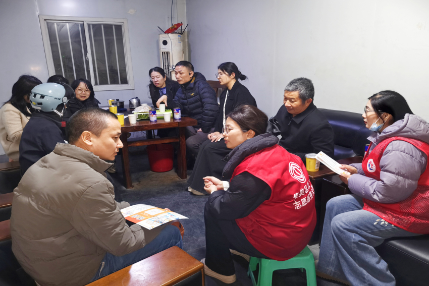 茶话交流区也渐渐坐满。工会工作人员与劳动者们围坐交谈,认真记录大家工作中遇到的困难与建议,并耐心普及权益保障知识。小小驿站里,谈笑声、问答声此起彼伏,温暖在彼此间流动。
